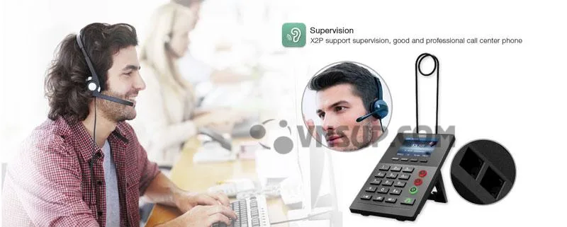 X2P là điện thoại IP của trung tâm cuộc gọi thiết kế đặc biệt. Cung cấp Tỷ lệ C / P cao và Thiết kế chuyên nghiệp. Cung cấp chân độc đáo để trả lời điện thoại. Sự lựa chọn khá chủ ý của các vật liệu chất lượng cao, kết hợp với màn hình LCD 2,8 inch 320×240 rộng lớn. Đảm bảo cả trải nghiệm người dùng mượt mà hơn và dễ dàng truy cập thông tin trực quan hơn nhiều. Các cổng mạng 10/100 Mbps kép có PoE tích hợp là lý tưởng cho việc sử dụng mạng mở rộng. X2P hỗ trợ 2 dòng và cộng với SRTP / HTTPS / TLS, Vlan và QoS. Nó bao gồm cổng RJ9 và cổng 3,5mm và việc sử dụng và giám sát tai nghe EHS. Được thiết kế rất đặc biệt để cải thiện hiệu quả của dịch vụ trung tâm cuộc gọi.