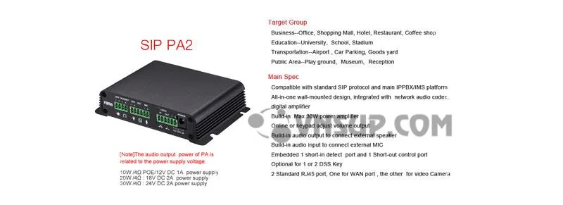 Cổng liên lạc & phân trang video PA2 SIP PA2 của Fanvil được thiết kế để trở thành một đơn vị linh hoạt. Phù hợp với nhu cầu của nhiều ngành dọc từ văn phòng, đến trung tâm mua sắm. Khách sạn hoặc nhà hàng, đến quán cà phê nhỏ quanh góc. Với khả năng tương thích với các giao thức SIP và nền tảng IPPBX chính. Các tính năng tuyệt vời và mức giá thậm chí còn tốt hơn. PA2 phù hợp cho bất kỳ ai muốn thực hiện giải pháp phân trang hoặc liên lạc nội bộ.