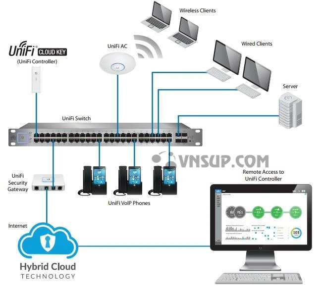 Công nghệ Hybrid CloudUniFi Cloud Key. Được tích hợp công nghệ Hybrid cloud “một dạng kết hợp public cloud với private cloud”. Với việc sử dụng Hybrid Cloud, ta có thể lựa chọn các môi trường khác nhau (private hoặc public). Để phù hợp nhất với mô hình triển khai. Ngoài ra, an ninh mạng cũng được kiểm soát tốt hơn và cho phép truy cặp từ xa an toàn, dễ dàng.