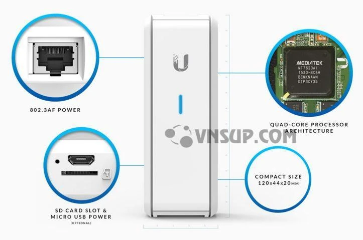 Kiến trúc lõi tứ (Quad-core): Với một bộ xử lý lõi tứ (Quad-core) UniFi Cloud Key cung cấp khả năng xử lý tốc độ cao và mạnh mẽ giúp quản lý thiết bị một cách tập trung dễ dàng.