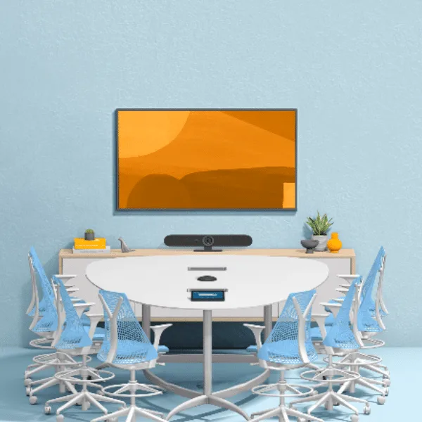 Phòng họp mô hình cho hội nghị truyền hình cho nhóm 8 người trên Ring Central với thiết bị hội nghị truyền hình dựa trên PC