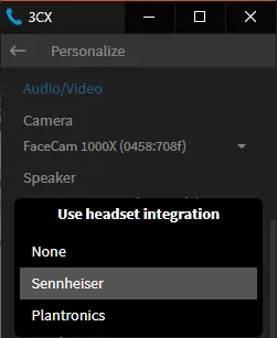 • CX Browser Extension – Go to “Settings” > “Personalize” > “Use headset integration” and select “Sennheiser”.