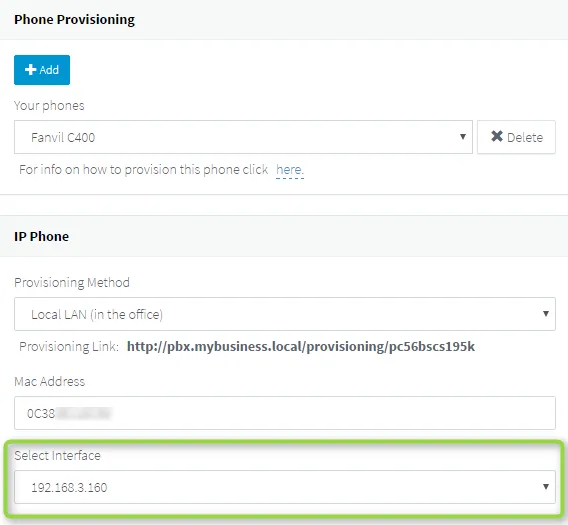 4. Tất cả các cài đặt cung cấp chính được điền trước. Nếu tổng đài của bạn  có nhiều thẻ mạng, hãy chọn điện thoại IP này được kết nối với mạng nào.
