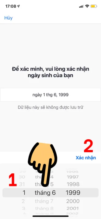 Bước 3: Kéo chọn ngày tháng năm sinh > Nhấn Xác nhận.