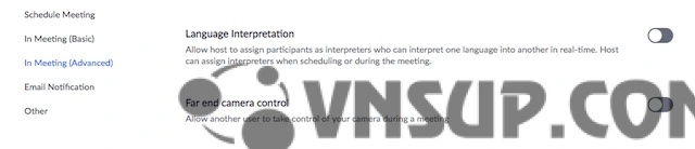 2. Kích hoạt Language Interpretation trong đề mục In Meeting (Advanced).