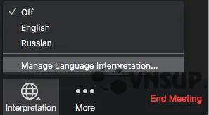 Khi cuộc họp hoặc hội thảo trên web (webinars) bắt đầu. Chủ tọa có thể bắt đầu tính năng thông dịch (bằng người). Chức năng này cấp cho người phiên dịch quyền truy cập vào kênh âm thanh của riêng họ. Khán giả hoặc người tham gia có thể chọn nghe ngôn ngữ mà họ muốn qua kênh âm thanh của người phiên dịch. Người nghe có thể chọn việc chỉ nghe thấy âm thanh từ người phiên dịch hoặc nghe theo dạng thuyết minh (có âm thanh gốc nhưng âm lượng nhỏ hơn âm lượng của người đang phiên dịch)