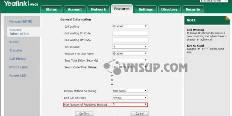 Bài viết dưới đây vnsup.com hướng dẫn đặt lại tài khoản tối đa cho điện thoại IP Yealink W60P trên giao diện Web.