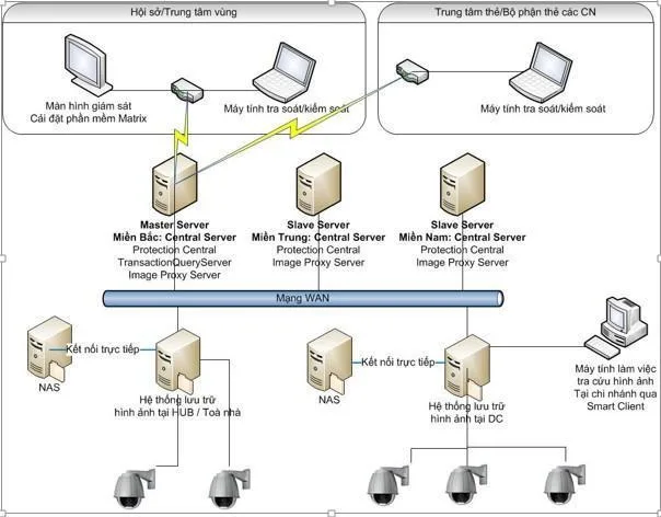 Sơ đồ mô tả giải pháp camera giám sát cho Ngân Hàng
