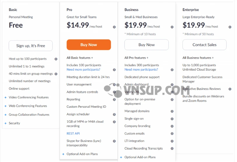 • Chỉ trả đúng bằng chi phí trên trang web chính thức của hãng https://zoom.us/pricing