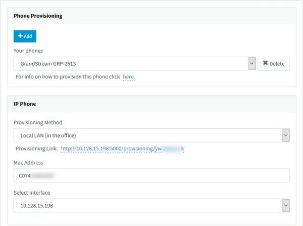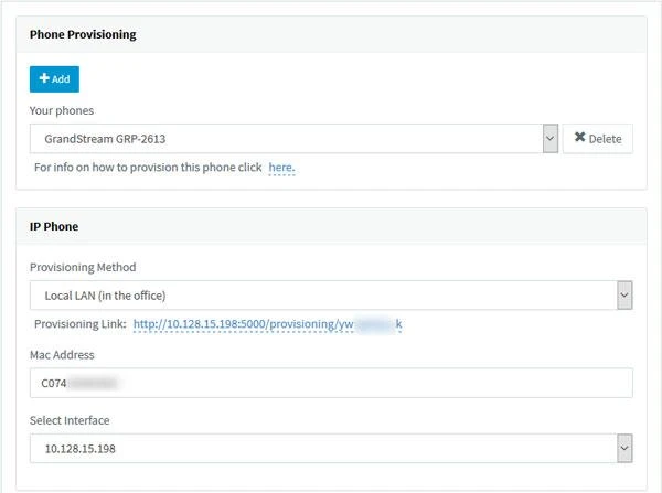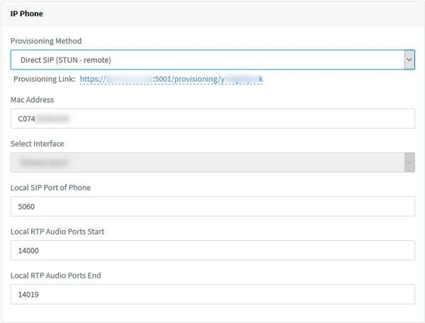 4. Tất cả các cài đặt cung cấp chính được điền trước. Nếu tổng đài của bạn có nhiều card mạng, hãy chọn giao diện mạng mà điện thoại IP này được kết nối.
