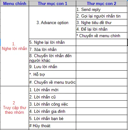 – My Voicemail: Mã truy cập voicemail trên trực tiếp máy người sử dụng