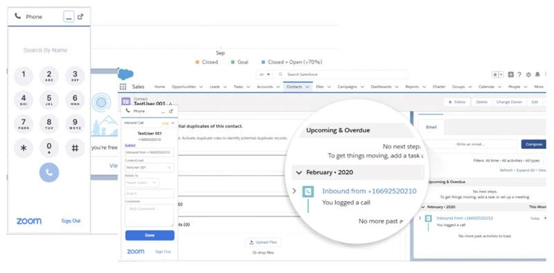 Tôi đang bán hàng và tích hợp Zoom Phone Salesforce. Cung cấp hiệu quả cao hơn bằng cách truy cập vào tất cả các tài khoản và thông tin liên hệ của tôi ở một nơi. Tôi sử dụng tích hợp Salesforce để nhấp để gọi. Cũng như tự động điền hồ sơ khách hàng vào các cuộc gọi trong nước