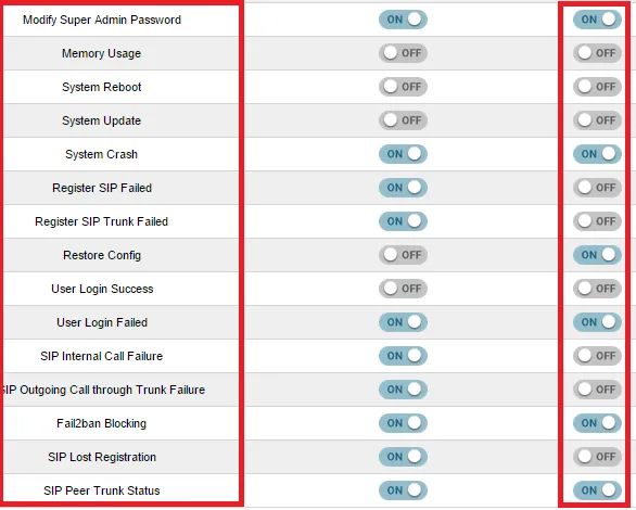 Dù bạn ở bất kỳ đâu bạn cũng có thể giám sát trạng thái hoạt động của tổng đài IP UCM6102/4/8/16 và UCM6510, như ai login vào, ai đang cố gắng login vào tổng đài, Hệ thống bị reboot, Bộ nhớ ghi âm sắp đầy, Kết nối đầu số 1800/1900 bị mất kết nối, Ai đang cố gắng đăng ký vào hệ thống... Tất cả đều được tự động gửi qua email cho bạn