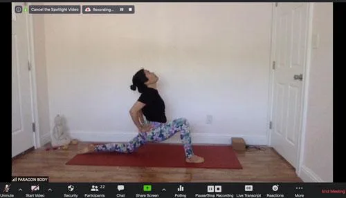 Mọi người đều ở nhà, và không có gì sai khi có cảm giác thoải mái. Ấm cúng với lớp học của bạn. Một điều tuyệt vời về việc giảng dạy từ xa là tất cả chúng ta có thể thiết lập bất cứ nơi nào chúng ta cảm thấy thoải mái và bất cứ khi nào chúng ta muốn! Giáo viên yoga của chúng tôi dạy từ hiên nhà của cô, với một nền tảng đẹp. Chúng tôi mở các sắc thái cho ánh sáng tự nhiên và thiết lập máy tính hoặc máy ảnh quay mặt đi để ánh sáng hoàn hảo. Nếu chúng tôi dạy các lớp sau, chúng tôi sử dụng đèn sân khấu chúng tôi đã mua. Có ánh sáng chất lượng là cực kỳ quan trọng khi giảng dạy qua Zoom! – Jordan Cook, chủ sở hữu của Paragon Body ở San Jose, California
