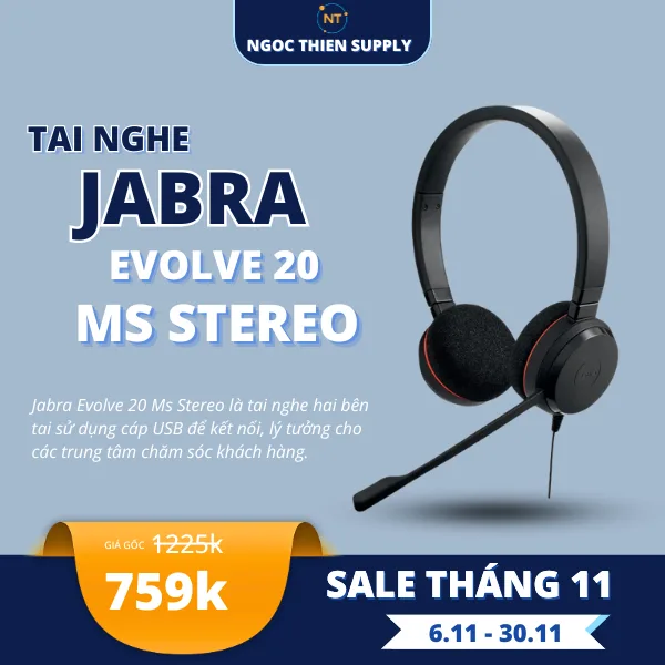 Jabra Evolve 20 Ms Stereo là tai nghe hai bên tai sử dụng cáp USB để kết nối. Tai nghe được thiết kế chuyên nghiệp để cải thiện cho các cuộc hội thoại.